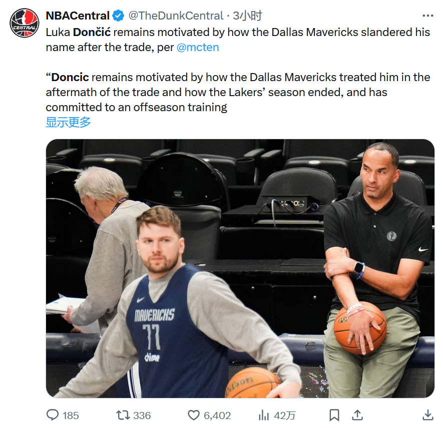 北京时间6月29日,NBA进入休赛期。湖人队球星东契奇一张近照曝光,东契奇明显减肥成功。据ESPN记者Dave McMenamin报道称,东契奇对于对独行侠的贬低不满,将疯狂加练誓要打脸质疑。